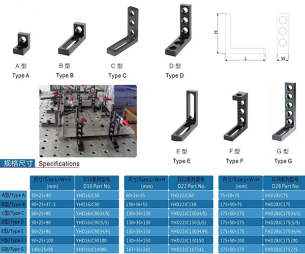 简介:D16/D28 定位角尺B型 产品说明: ► 该类型定位件用途十分广泛; ► 可作为平台扩展延伸; ► 底部为槽型的设计为可调式; ► 分孔/槽/,孔/孔,槽/孔三类共七款;