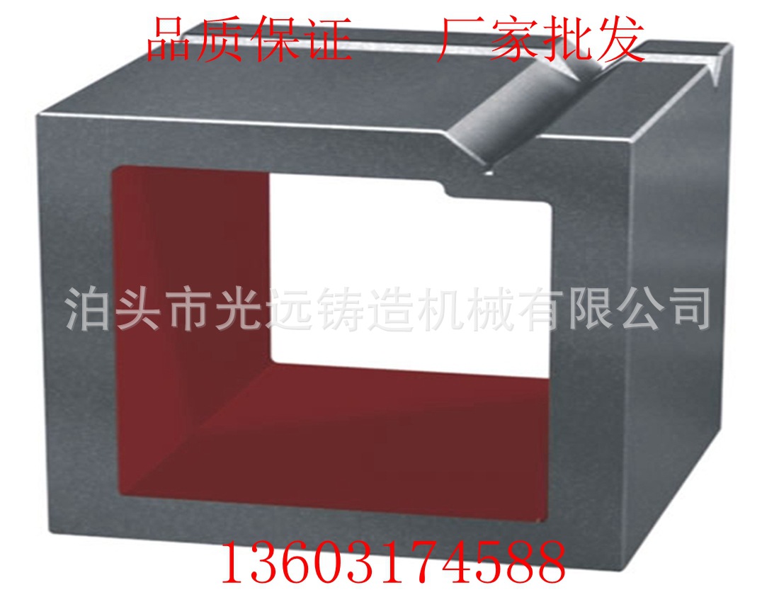 铸铁方箱在出厂的时候要进行严格的质量检验,其中包括方箱的各个工作面不能有锈迹、划痕、裂痕、凹陷等影响其精度和性能的缺陷。并且在方箱的内壁应该有标牌,用来标志规格尺寸、出厂编号、制造商等信息。