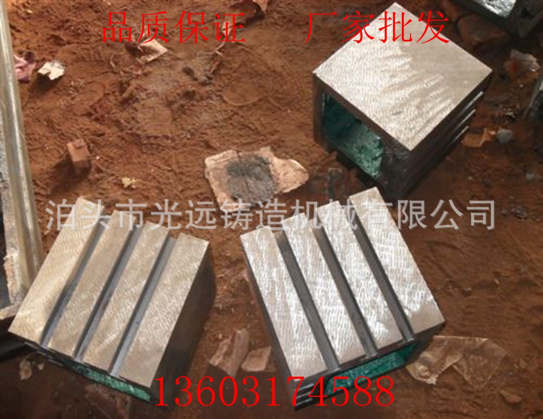 铸铁方箱用途:铸铁方箱有很多的用途,主要用来进行垂直度的检验和划线、零部件的平行度。铸铁方箱是用铸铁制成的具有四个工作面的箱式平台。其中一个工作面是有一条v型槽。用来满足特殊的需要。