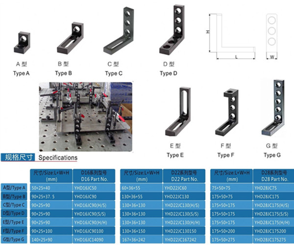 简介:D16/D28 定位角尺D型 产品说明: ► 该类型定位件用途十分广泛; ► 可作为平台扩展延伸; ► 底部为槽型的设计为可调式; ► 分孔/槽/,孔/孔,槽/孔三类共七款;
