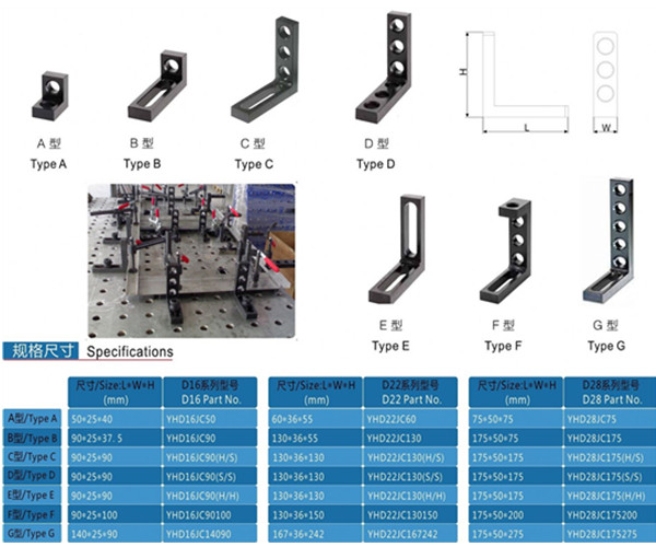 简介:D16/D28 定位角尺C型 产品说明: ► 该类型定位件用途十分广泛; ► 可作为平台扩展延伸; ► 底部为槽型的设计为可调式; ► 分孔/槽/,孔/孔,槽/孔三类共七款;