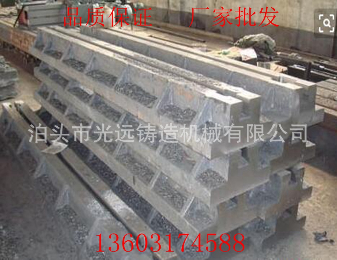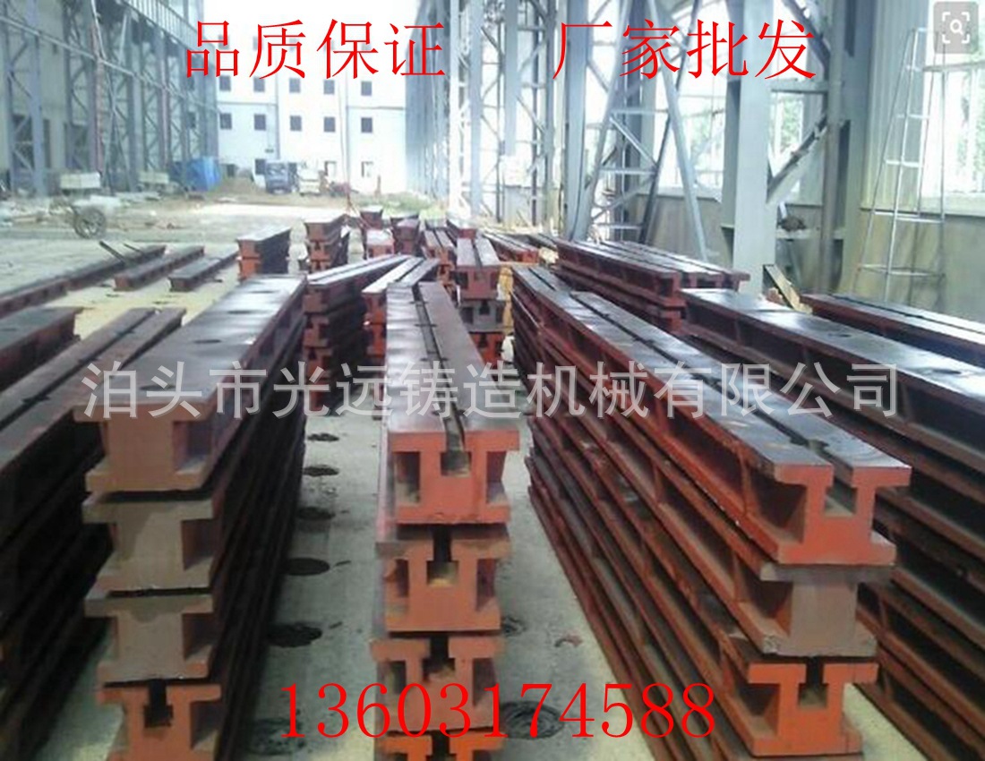 铸铁地梁(地轨)的优点:这样不用做成大型铸铁平板,拼接安装使用方便,即节省了材料成本,又可以占用很小的空间,可谓是性价比很高。